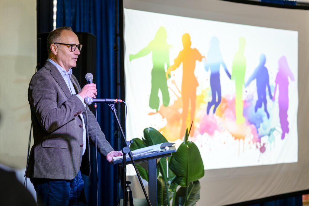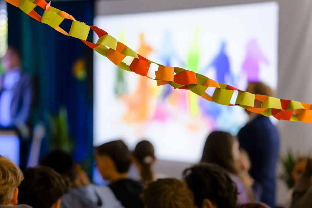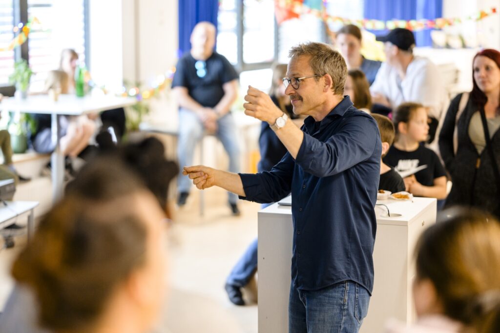 Am 9.5.2025 haben wir mit unserer Schulgemeinschaft und einigen geladenen Gästen unsere Schulgründung gefeiert. Vorbereitet wurde das ganze von unseren Schüler:innen in der Projektzeit – so gab es Projektgruppen für das hervorragende Bühnenprogramm, für Aktionen, für eine Zeitkapsel, die jetzt im Schulgarten vergraben ist und für die Verpflegung.
